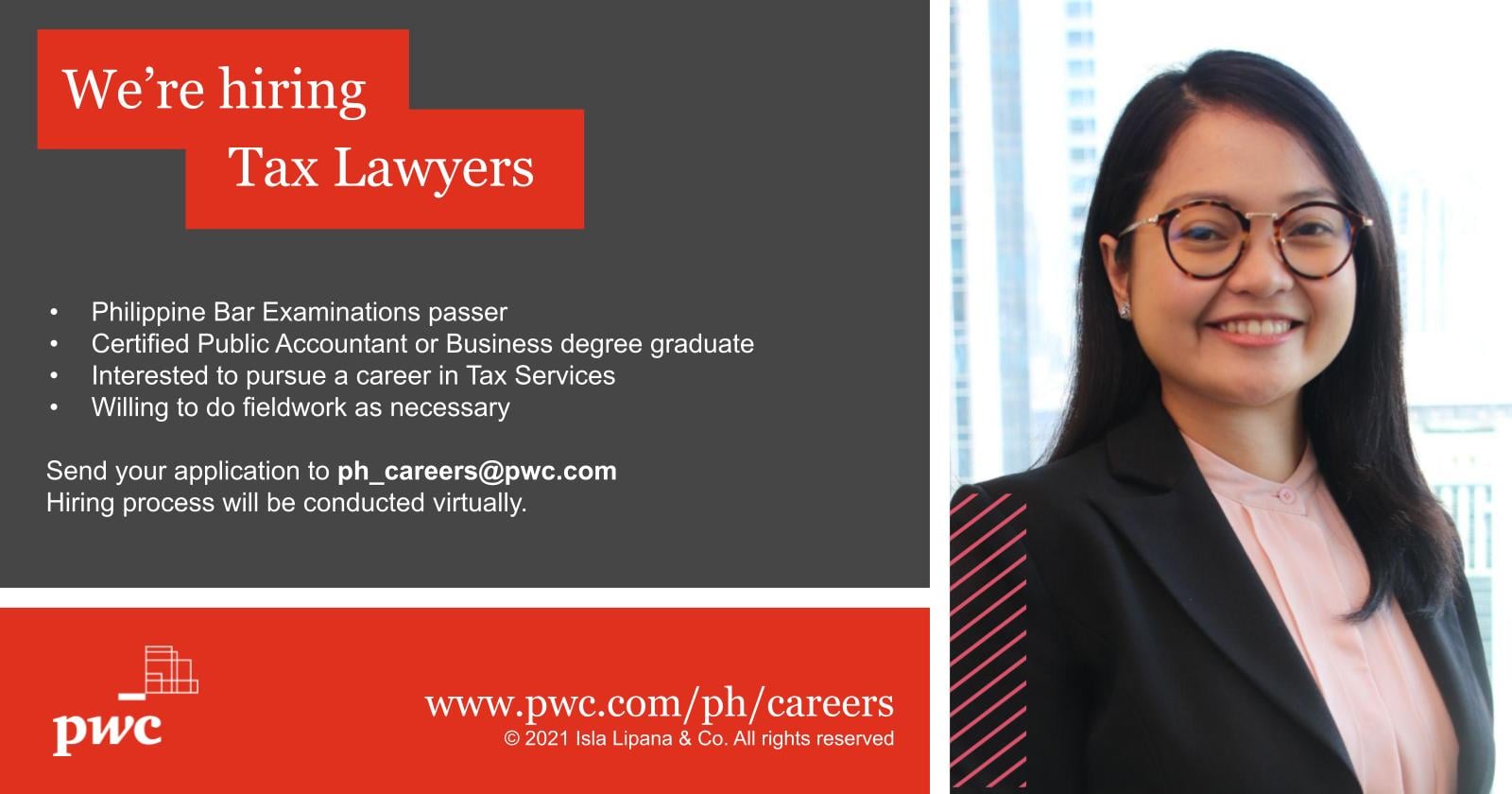 Pwc Philippines On Twitter Be Part Of Team Pwc We At Isla Lipana Co Pwc Philippines Are Looking For Cpa Lawyers For Our Tax Services Group Apply Now And Send Your Cv